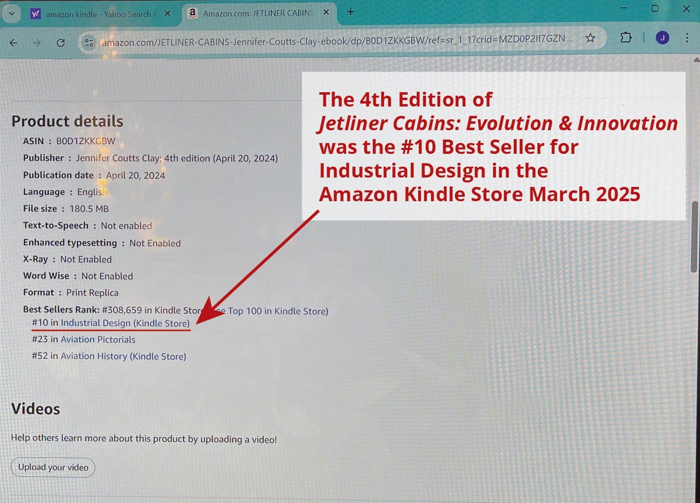 The 4th Edition of JETLINER CABINS: Evolution & Innovation was the #10 Best Seller for Industrial Design in the Amazon Kindle Store March 2025!