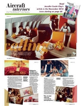 This year is the 50th anniversary of the jumbo. To mark the occasion, join Jennifer Coutts Clay as she describes the passenger experience in Pan Am’s B747-100 upper deck in the November 2018 Issue of Aircraft Interiors International magazine.